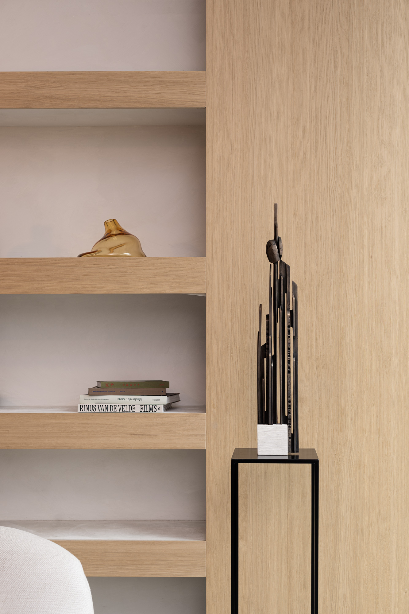 Lineair is an intriguing sculpture by Guy Buseyne defined by architectural precision and geometric clarity. Its vertical lines and open spaces create a sense of transparency, rhythm, and movement, evoking the impression of an abstract city skyline or a modern tower. The composition suggests two figures standing close together, merging visually into a unified whole.